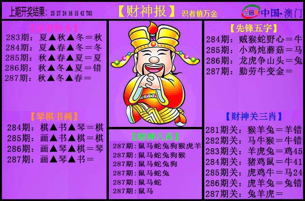 287期: 澳门六合彩红姐彩圖信封【黄财神报】每期自动更新