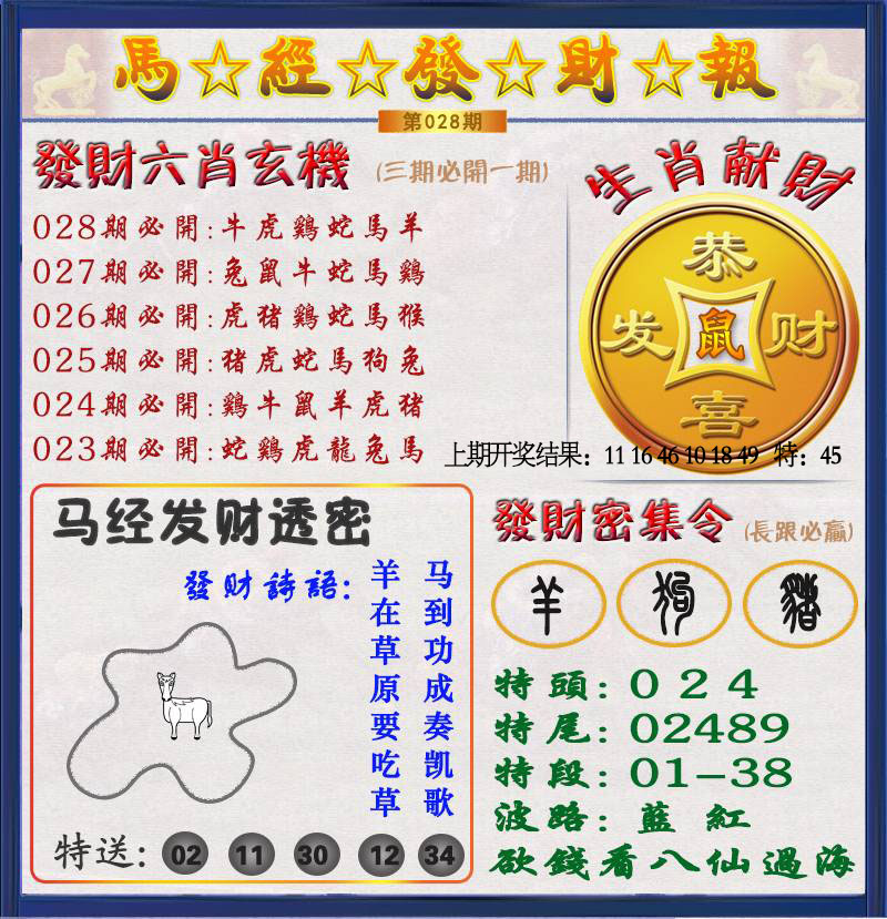 028期: 澳门六合彩红姐彩圖信封【黄财神报】每期自动更新